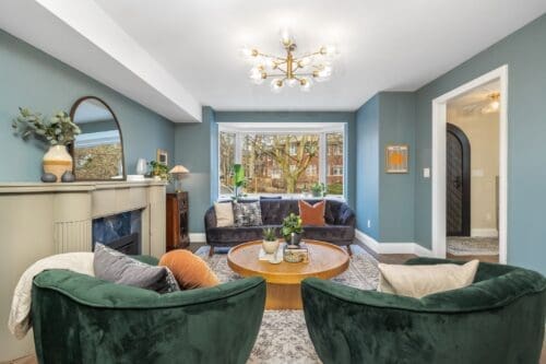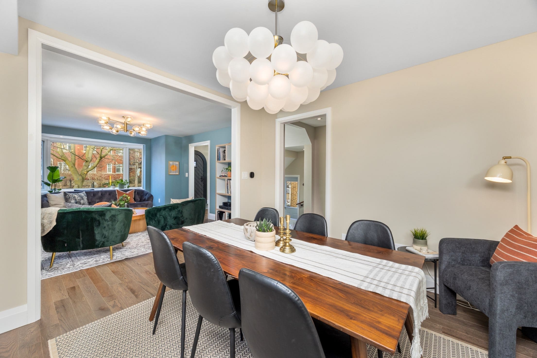 The curb appeal? Stately with a touch of historic charm, perfectly in tune with the neighbourhood’s character. A mature leafy tree adds both privacy and lush greenery, creating a picturesque and inviting first impression. And with a private driveway on both sides of the house, plus easy parking for three cars and a garage, convenience is built right in.