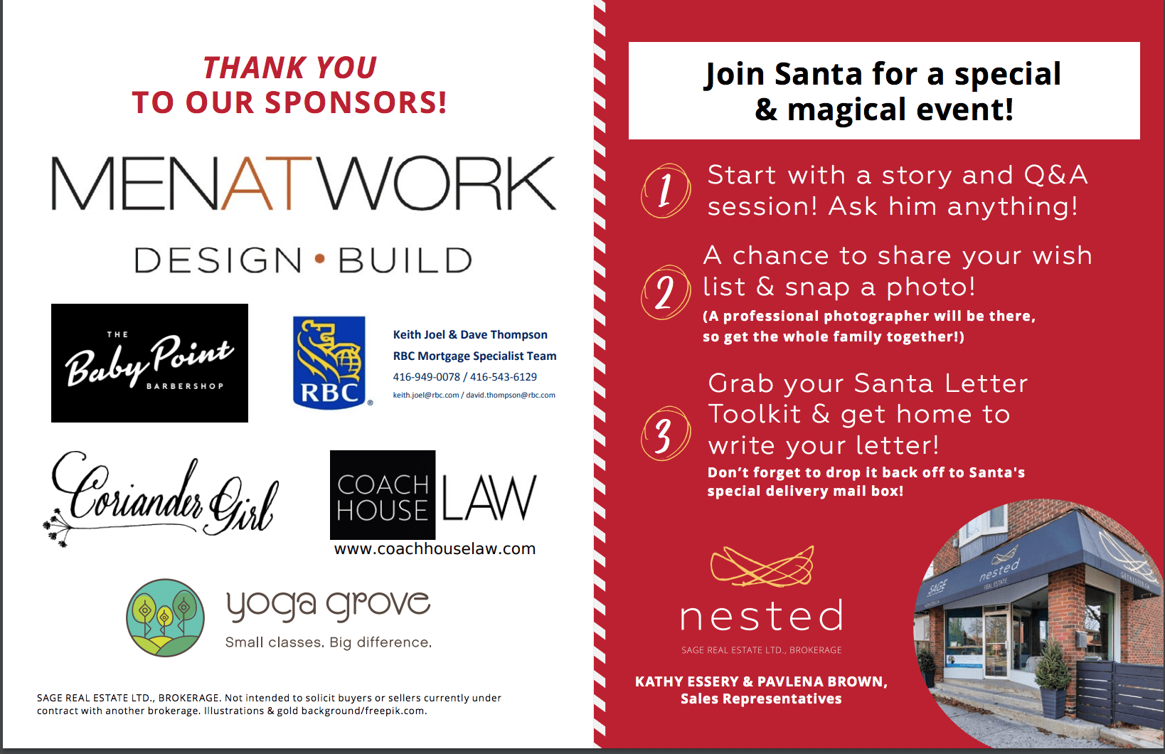 Hosted by Nested Real Estate and our Local Sponsors ( MEN at WORK, RBC, Coachhouse Law, Baby Point Barbers, Yoga Grove, Corriander Girl)